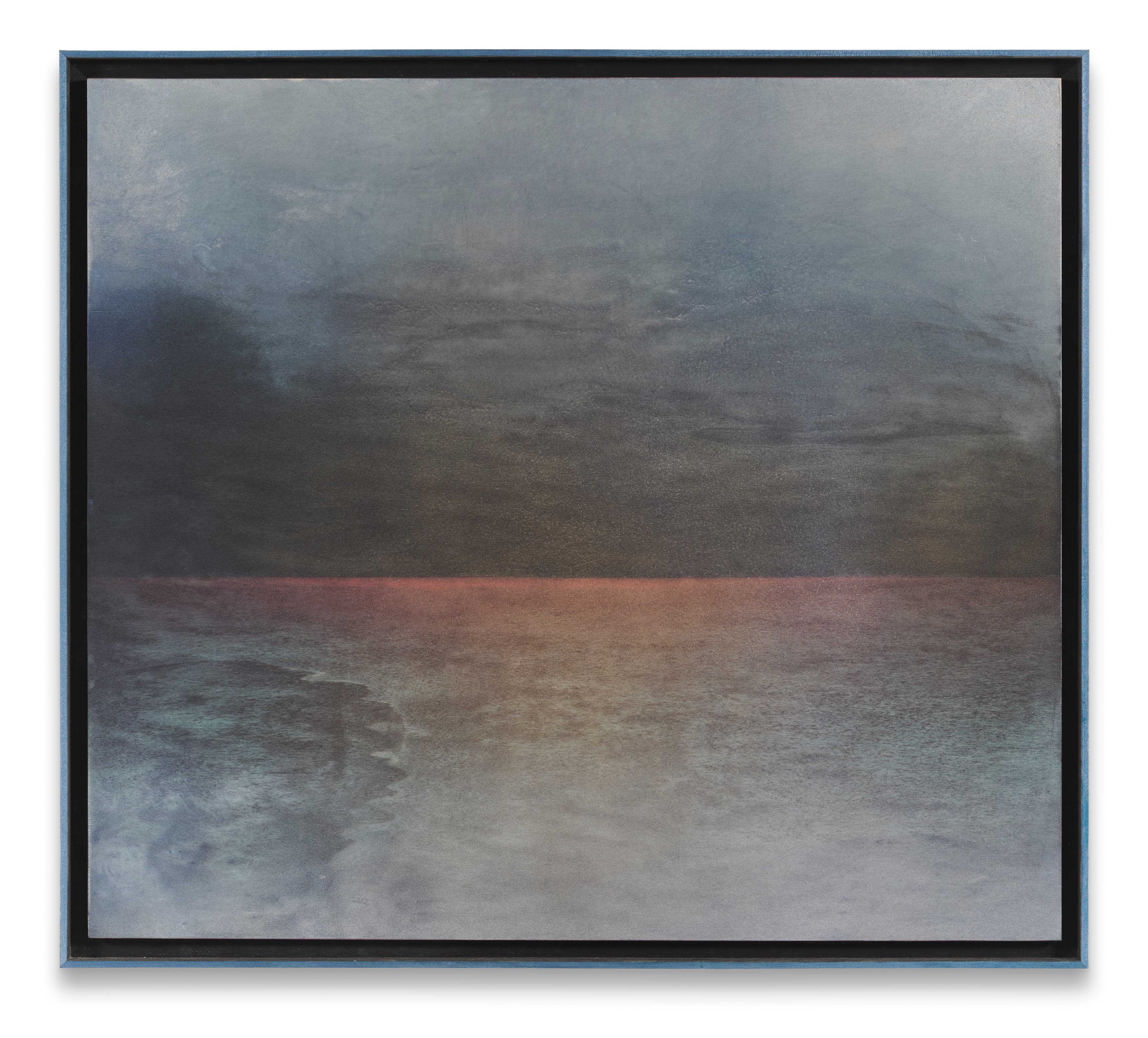 Photo by Luisa Baldhuber, "Archaeology I", 2025, glass, digital print, metal clamp, 24 x 23 cm | Robert Elfgen Gabbiano, 2025 Metallic spray paint, wood stain, ink on wood, artist's frame 96.5 x 107.5 x 4 cm | 38 x 42 1/4 x 1 5/8 inches (framed) © Robert Elfgen Courtesy the artist and Sprüth Magers Photo: Mareike Tocha